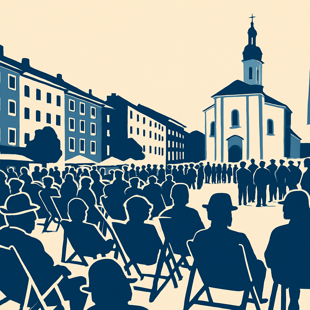 When the evening light falls over the facades, brass and oldies unfold their effect: soft hall flags, clear articulation, playful stage performance. The car-free town square in the evening enhances the acoustics and creates short paths to surrounding gastronomy. Folding chairs and deck chairs provide relaxed lounging, food and drinks may be brought along.