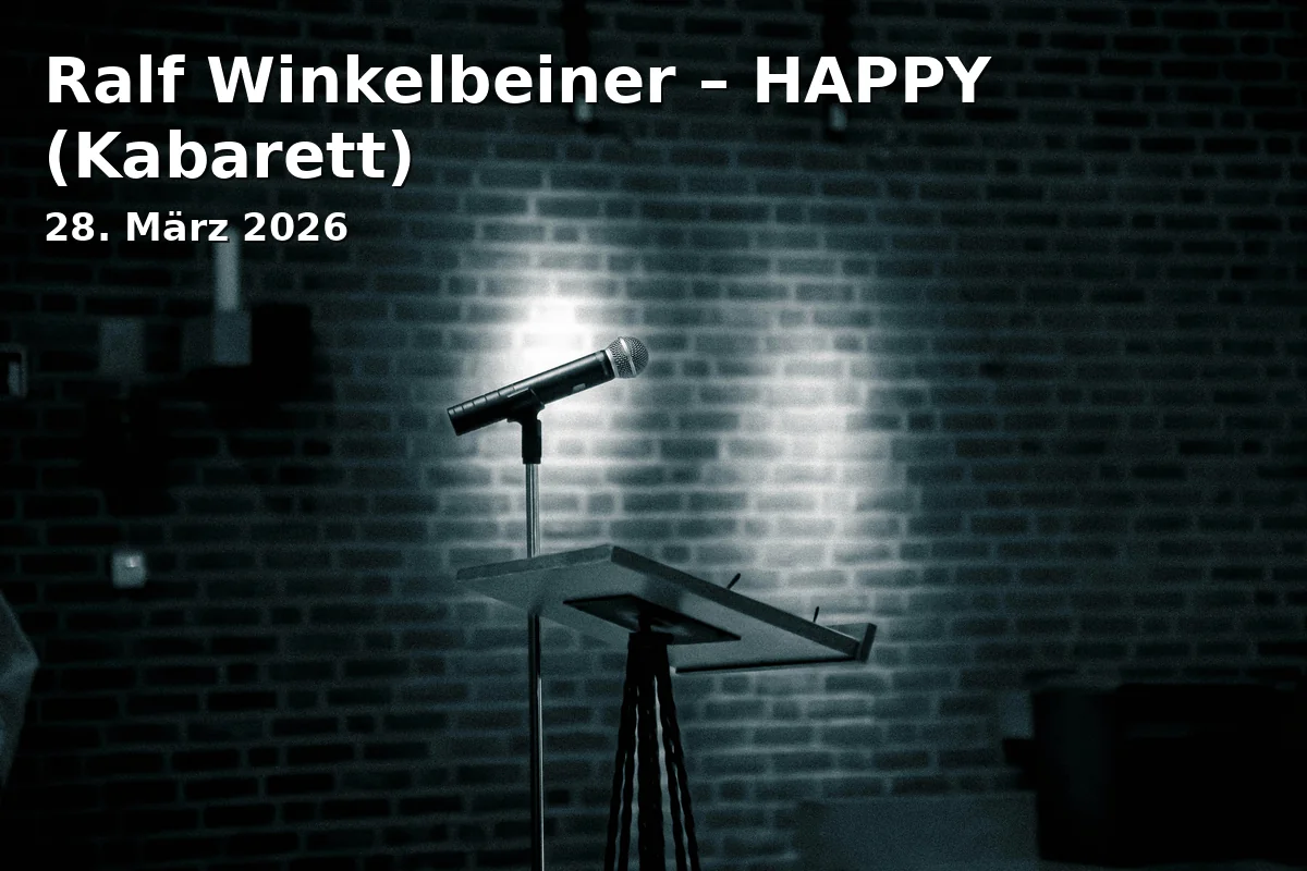 Erleben Sie am 28. März 2026 Ralf Winkelbeiners neues Kabarettprogramm „HAPPY“ in Traunstein. In der gemütlichen Atmosphäre der NUTS Kulturfabrik erwartet Sie ein Abend voller Humor und pointierter Stand-up-Comedy. Ralf Winkelbeiner verbindet in seinem Programm bayerischen Kabarett-Humor mit präzisem Timing und einer Nähe zum Publikum, die jeden Auftritt einzigartig macht. Die NUTS Kulturfabrik bietet eine lockere Tischbestuhlung und Thekenservice, die für ein entspanntes und humorvolles Erlebnis sorgen. Verpassen Sie nicht die Gelegenheit, einen Abend mit viel Gelächter und Entertainment zu genießen, und erleben Sie, wie Ralf Winkelbeiner mit seiner besonderen Art das Publikum zum Strahlen bringt.
