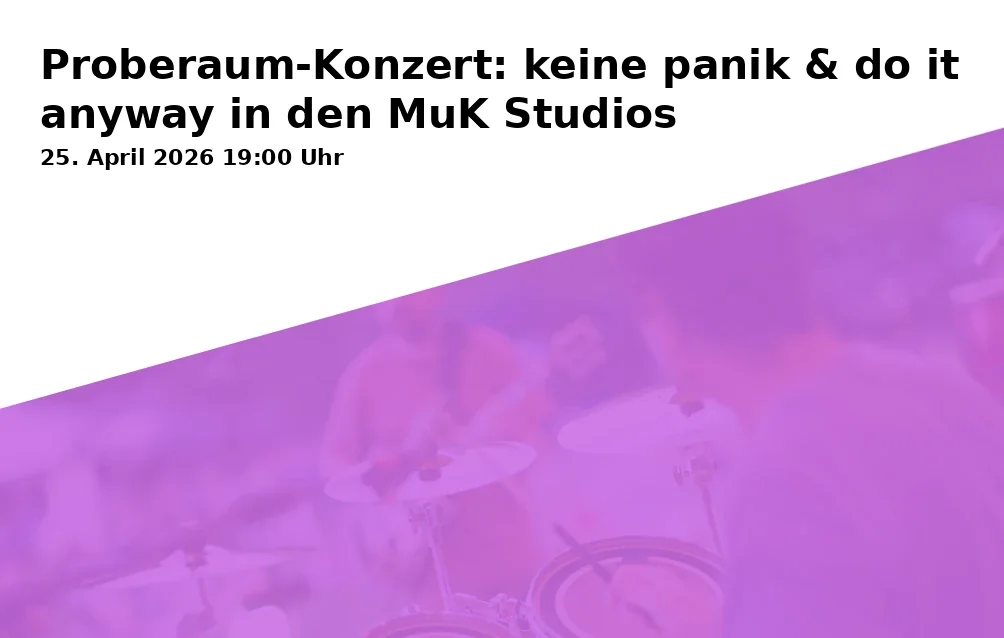Am Samstag, 25. April 2026 verwandeln die MuK Studios in Traunstein ihren Proberaum in eine intime Live-Bühne: keine panik aus Waging und do it anyway aus Traunstein liefern Indie-Pop direkt auf Tuchfühlung – roh, nah, mitreißend. Beginn ist um 19:00 Uhr, das Setting verspricht dichte Club-Atmosphäre und maximalen Kontakt zwischen Band und Publikum.
